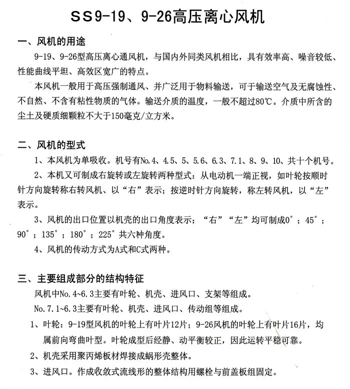 產(chǎn)品名稱: SS型 9-16,9-26高壓離心風(fēng)機(jī)