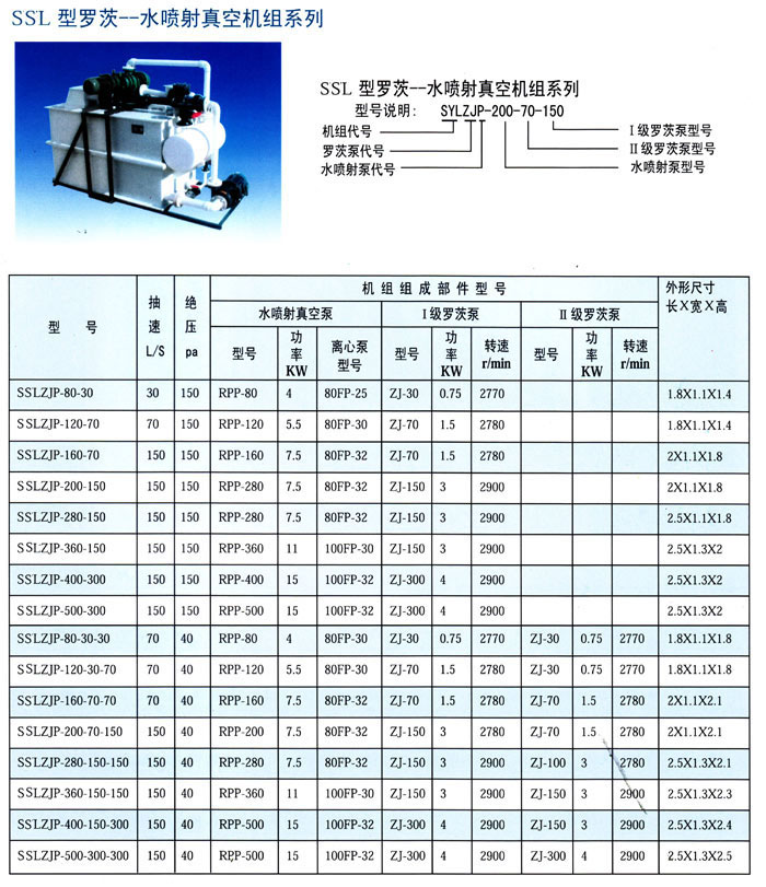 產(chǎn)品名稱: SSL型羅茨--水噴射真空機(jī)組系列
